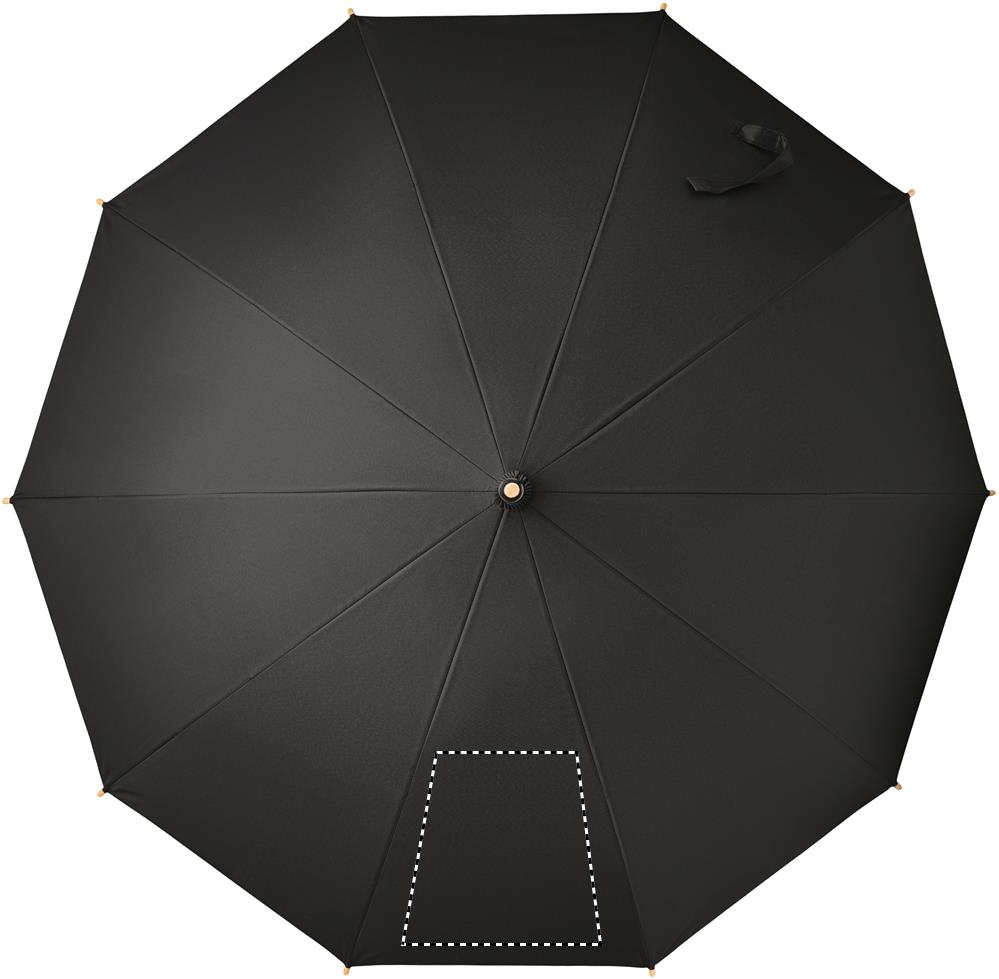 23,5'' Regenschirm aus 190T RPET-Pongee. Windbeständig. Stock, Spitzen und Griff aus Bambus, Stangen aus Fiberglas. Manuelle Öffnung und Schließung. Bambus ist ein natürliches Produkt, es kann daher zu leichten Abweichungen in Farbe, Dekor und Maßen kommen.