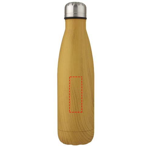 Vakuumisolierte Edelstahlflasche mit legendärem Design und einer Oberfläche in Holzoptik. Der isolierte 18/8 Edelstahl hält Getränke über mehrere Stunden heiß oder kalt. BPA-frei, geprüft und zugelassen nach dem deutschen Lebensmittelrecht (LFGB). Auf Phthalate geprüft und zugelassen gemäß den REACH-Vorschriften. Diese schlanke Wasserflasche hat einen Sockel, der in die meisten Getränkehalter passt, und ist ein perfekter Werbeartikel. Das Fassungsvermögen beträgt 500 ml. Handwäsche empfohlen. Verpackt in einer Geschenkbox aus Recyclingkarton.