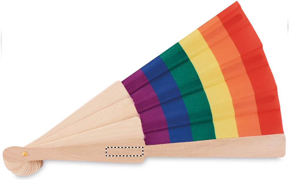 Fächer aus Holz mit Polyestergewebe. In Regenbogenfarben.