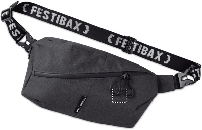 Festibax® Basic. Ultimative Festival-Bag aus 300D 2tone kationisch gefärbtem Polyester mit Reißverschluss und abnehmbarem, verstellbarem Gurt. Die Tasche hat 2 Reißverschlussfächer, das rückwärtige Fach ist diebstahlsicher.