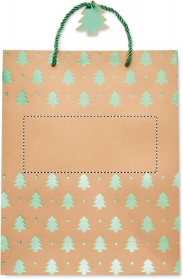 Elegante Geschenktüte aus Kraftpapier mit saisonalem Muster. Inklusive Geschenkanhänger. 250 g/m².