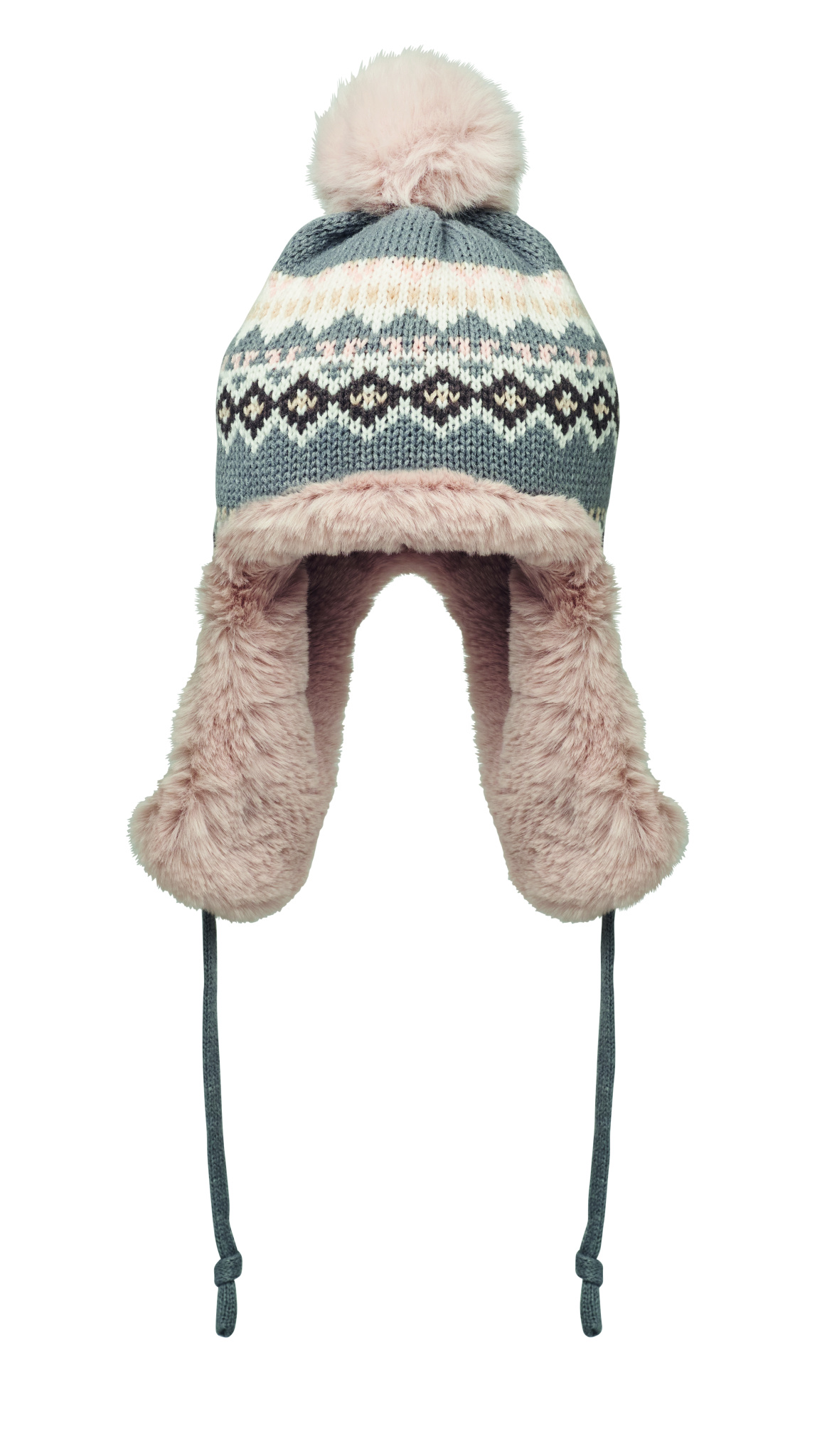 Gestrickte Mütze mit Ohrenklappen und Bommel aus Acrylfaser mit Polyester- und Fleece-Futter. Mit Label zur Werbeanbringung. Einheitsgröße.