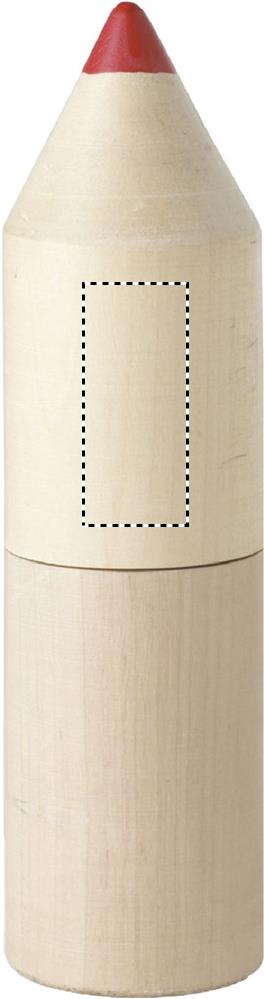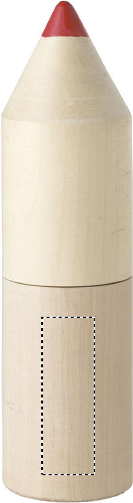 12 Buntstifte in einer runden Box aus Holz in Form eines Stiftes.