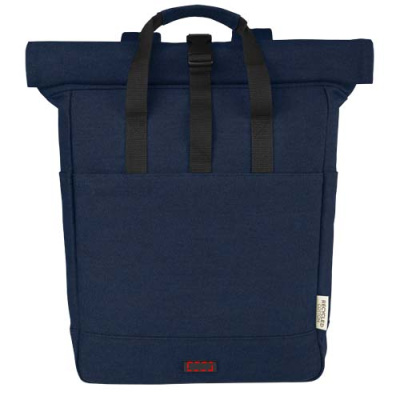 Der vom Einzelhandel inspirierte Rolltop-Rucksack Joey besteht aus äußerst langlebigen und nachhaltigen Materialien, GRS-recyceltem Canvas und GRS RPET-Futter, und verfügt über ein spezielles Tabletfach sowie ein gepolstertes 15"-Laptopfach. Der Rucksack hat außerdem 2 seitliche Taschen für Wasserflaschen und eine große Fronttasche mit Reißverschluss sowie eine Rolltop-Öffnung mit Reißverschluss für maximale Kapazität und Sicherheit. Die 2 verstärkten Tragegriffe aus Gurtband machen es einfach und bequem, die Tasche als Business-Tasche zu tragen. Die dekorative Metallplatte kann ein Logo durch ihre dezente und matte Oberfläche zum Leuchten bringen.