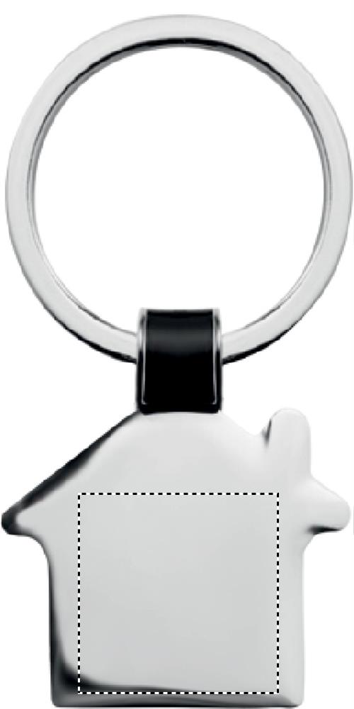 Schlüsselanhänger in Form eines Hauses. Aus Metall. Hochglänzendes Nickel-Finish.