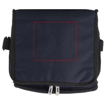 Zusammenfaltbare Kühltasche mit Hauptfach mit Reißverschluss und Fronttasche mit Reißverschluss. Verstellbarer Schulterriemen. Die Kühltasche kann dank des Klettverschlusses an der Fronttasche flach zusammengefaltet werden.