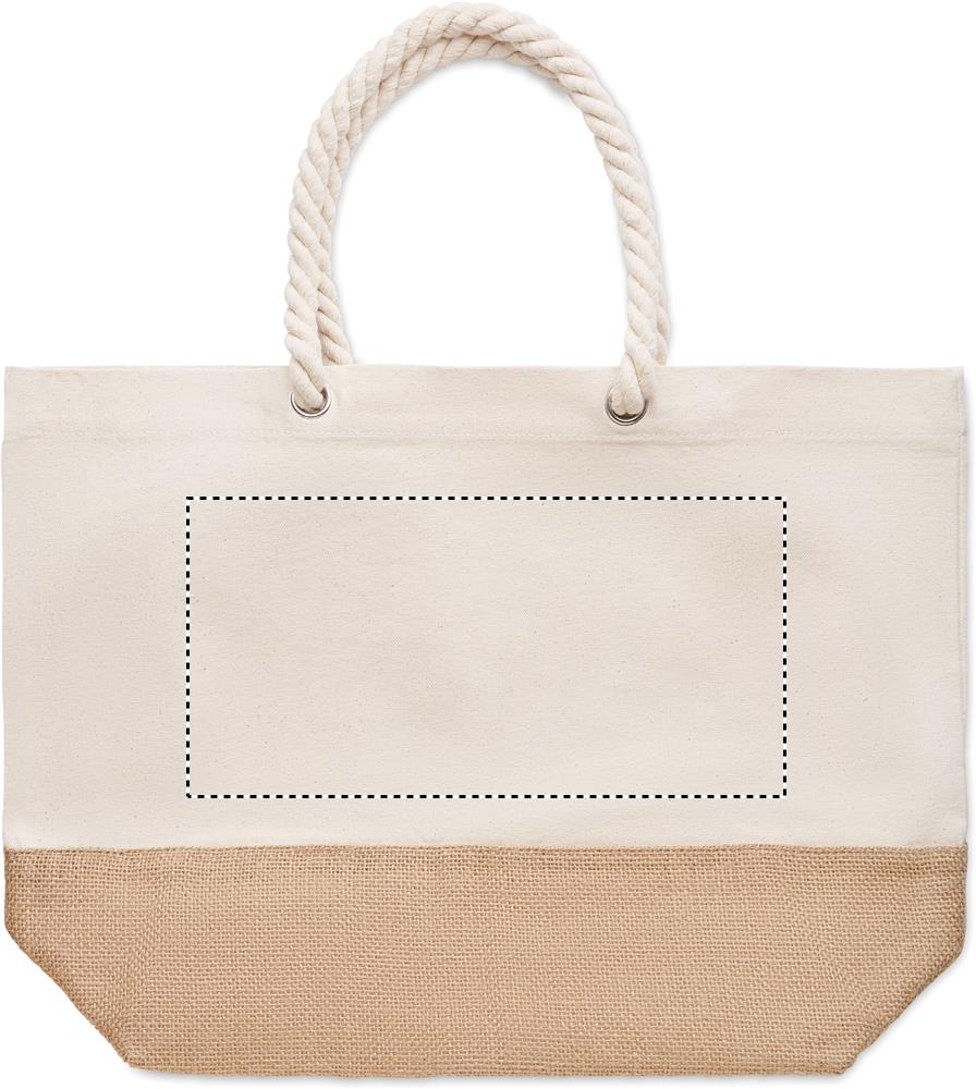 Strand- oder Einkaufstasche aus Canvas mit Kordelgriff und Dekor aus Jute. 280 g/m².