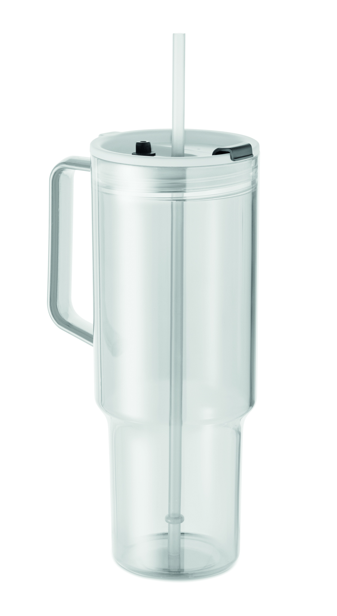 Trinkbecher aus RPET. Verschluss mit integriertem PP-Trinkhalm. Füllmenge: 1200 ml.