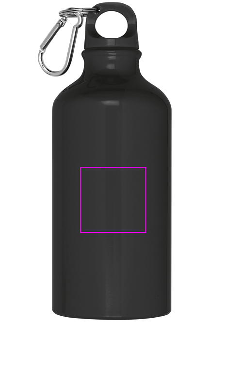 Auslaufsichere Aluminium Trinkflasche mit Karabiner und 500ml Fassungsvermögen. Ihre Werbung wird auf die Flasche gelasert.