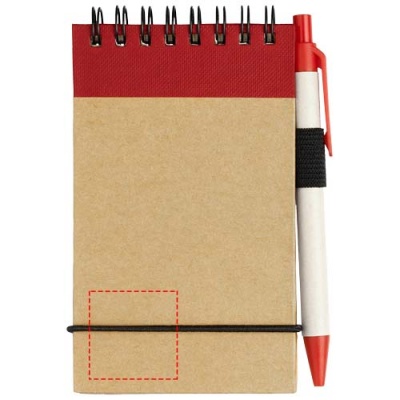 Mit dem Zuse Recycling-Notizblock mit farblich passendem Stift lassen sich schnell Ideen notieren. Der kleine Notizblock enthält 40 linierte Blätter aus A7 Recyclingpapier, passt also in jede kleine oder große Tasche, liegt gut in der Hand und ist vor allem nachhaltig. Verschiedene Druckoptionen stehen zur Verfügung, um ein beliebiges Logo auf der Außenseite des Hardcovers anzubringen.