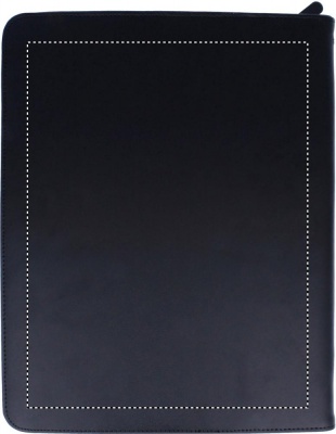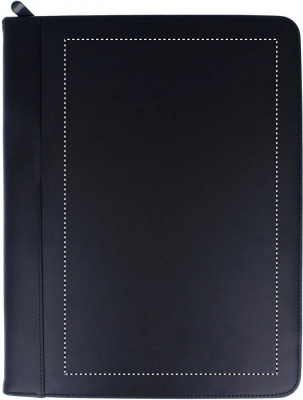 A4 conference folder with bonded leather cover. Zipped. 25 plain sheets notepad. 4 inner compartments. Pen holder.