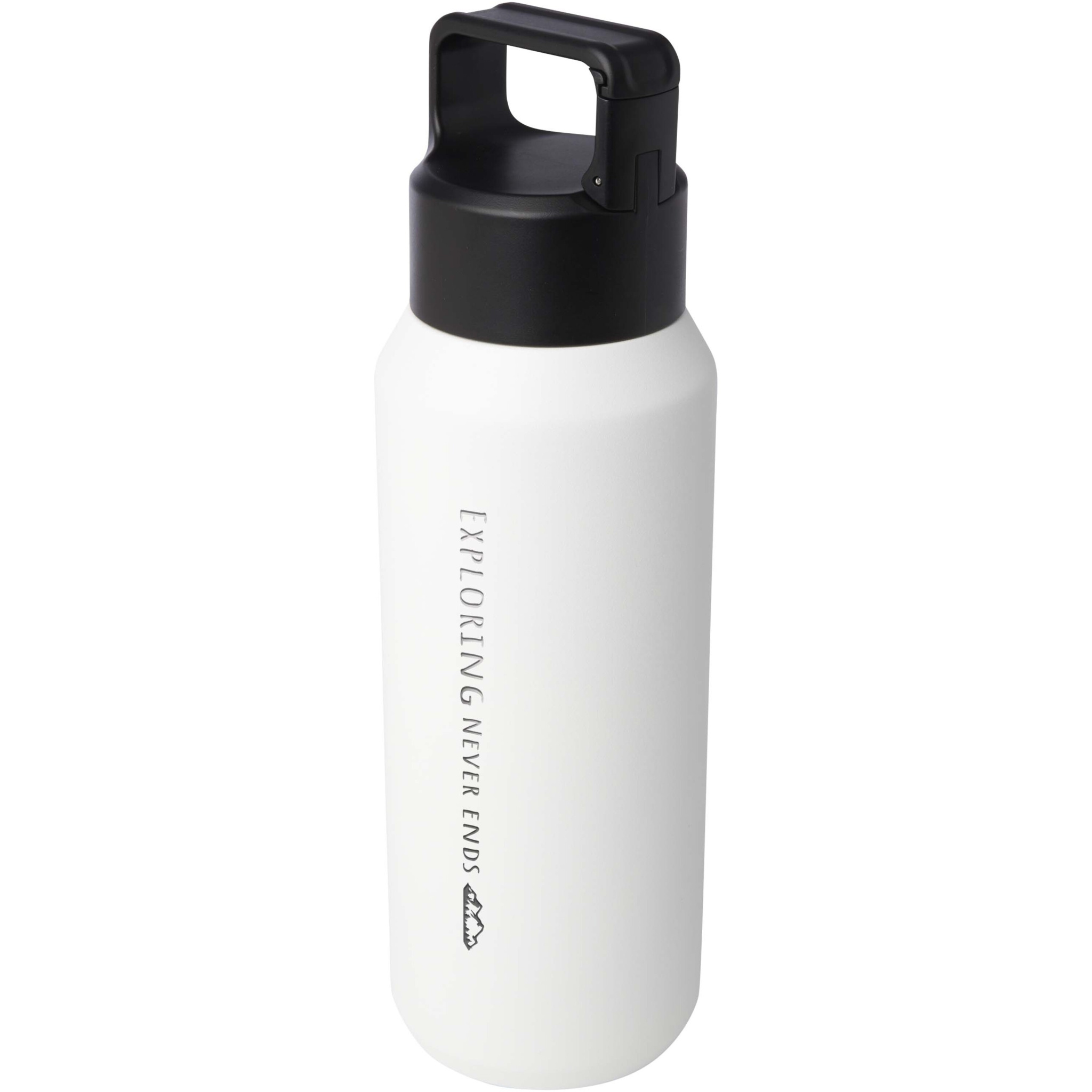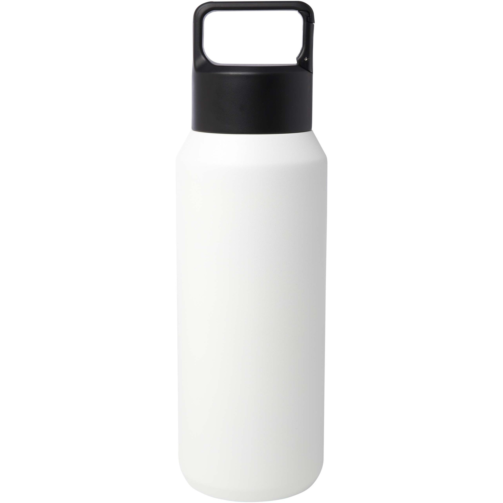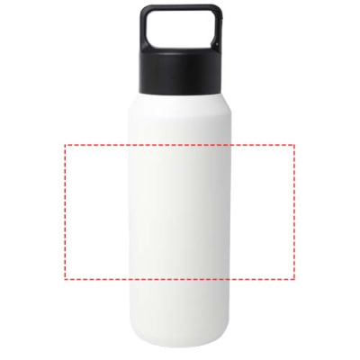 RCS certified stainless steel double-walled copper vacuum insulated water bottle featuring a lid with a built-in carabiner clip, making it easy to attach to a bag or belt. Also suitable for carbonated drinks. Delivered in a recycled cardboard gift box. Volume capacity: 600 ml.