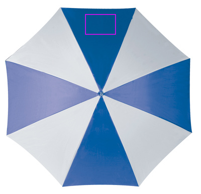 Automatic umbrella with metal frame, straight wooden handle and 170T polyester covering. Your logo will be printed on one segment.