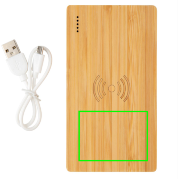 Logo trade promotional gifts picture of: Bamboo 4.000 mAh wireless 5W Powerbank