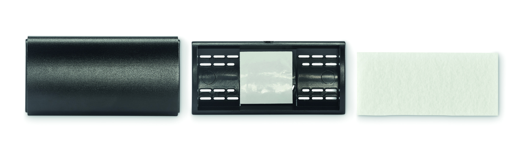 Car vent air freshener with aluminium cover and ABS clip. Includes RPET felt insert for aroma liquid (not included).