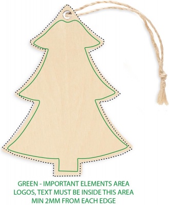 Christmas ornament in plywood with jute rope for sublimation in tree shape. White imprint is not possible.