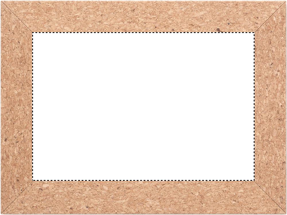 Cork photo frame. Frame can be in hanging, vertical or horizontal position. Picture size: 15 x 10cm. Cork is 100% natural material. Due to its structural nature and surface porosity the final print result per item may have deviations.