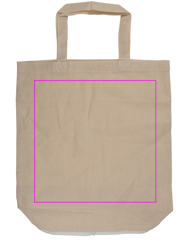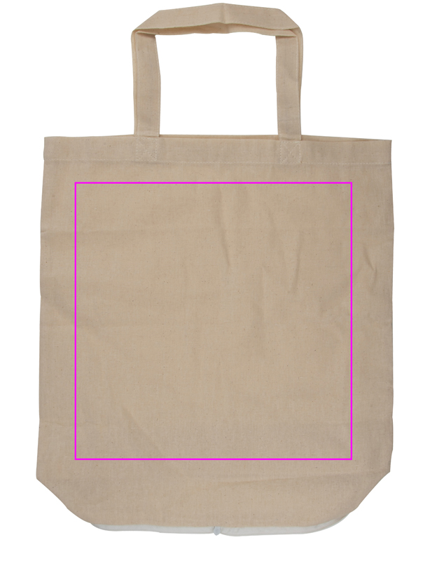 Natural colored, foldable and environmentally-friendly cotton bag (120g/m²) with carrying handle. We print your logo on one side.