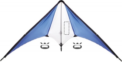 Delta kite in 210T Ripstop polyester with 2 handles. Presented in pouch.