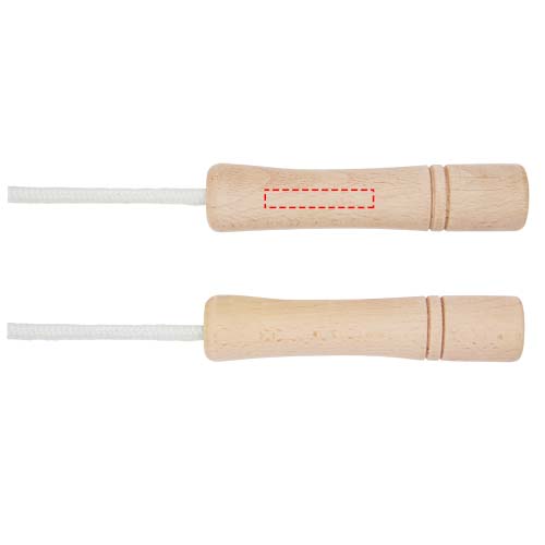 Combine fun and exercise with this skipping rope for adults. The rope is made of cotton and the handles are made of beech wood. The length of the rope is 310 cm which allows for easy skipping for adults up to 195 cm in length. The handles (12 x 2.5 cm) are ergonomically shaped providing a comfortable grip. Delivered with a cotton storage pouch (18 x 13 cm). Laser engraving is recommended as a sustainable decoration option.