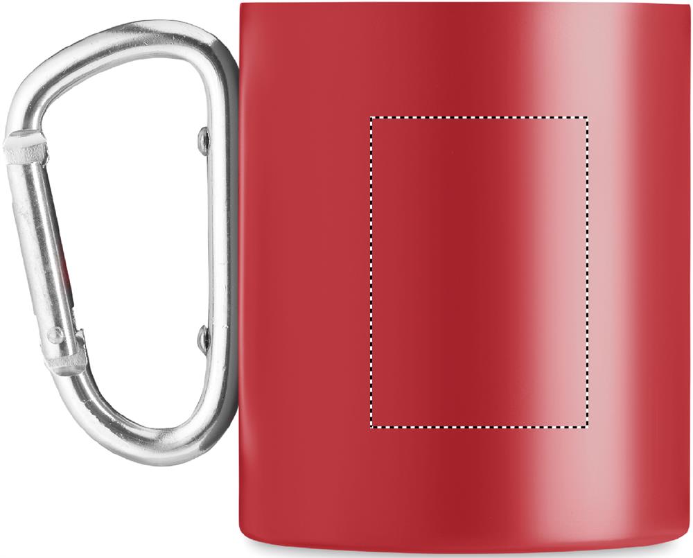 Double wall stainless steel mug, with carabiner handle. Capacity: 300 ml.