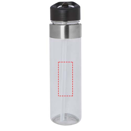 Water bottle with 650 ml capacity and a convenient flip spout for easy drinking. Made from durable Tritan material with stainless steel details on the top of the bottle.