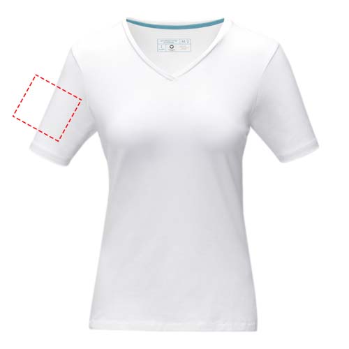 The Kawartha short sleeve women's organic V-neck t-shirt is a stylish and sustainable choice. Made from 95% organic cotton, with a fabric weight of 200 g/m², this t-shirt is not only good for the environment, but also soft and comfortable to wear. The 5% elastane ensures a soft and stretchy fit. With its V-neck and short sleeves this t-shirt is both sustainable and modern.