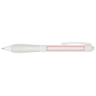 Recycled plastic ballpoint pen with a rubberized barrel, and grip made of TPR. Ink colour: Black. Writing length: 1000 metres. Nib size: 1.0 mm.