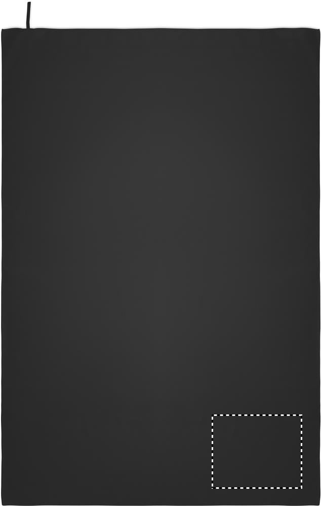 Microfibre towel made of 90% polyester and 10% polyamide with elastic hanger loop. Lightweight and quick drying. Size 100 cm x 150 cm.