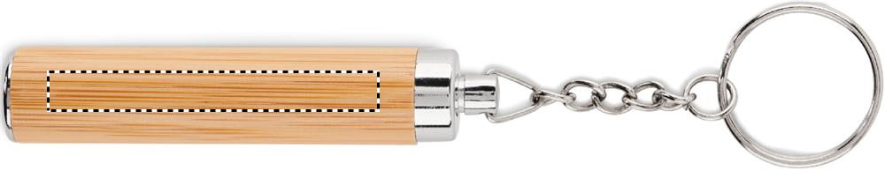 LED bulb torch in bamboo with key ring. 3 LR41 batteries included. Bamboo is a natural product, there may be slight variations in colour and size per item, which can affect the final decoration outcome.
