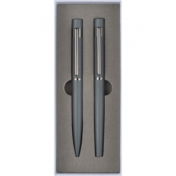 Elegance and comfort in one set! Includes a ballpoint pen and a rollerball, both with blue-writing refills and a rubberized surface for optimal grip and a stylish design. Perfect for everyday use or as a personal gift.