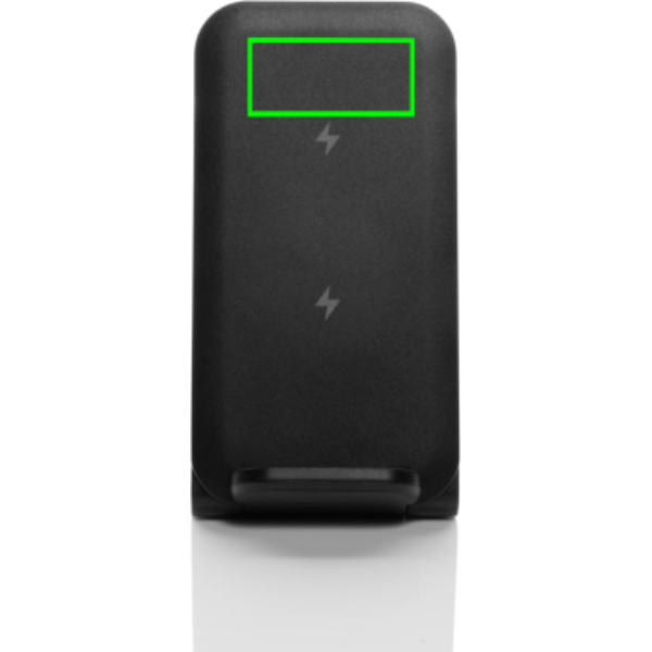 3-in-1 wireless charger stand made with RCS recycled ABS. Total recycled content: 51% based on total item weight. RCS certification ensures a completely certified supply chain of the recycled materials. The wireless charger comes equipped with a 15W wireless charger and an additional 5W wireless charger suitable for earbuds cases or other small wireless chargeable devices and a 2.5W wireless charger for smartwatches ( Apple watches only). Foldable design so easy to take with you. Including RCS certified 120 cm recycled TPE cable. Packed in FSC® mix kraft packaging. Item and accessories 100% PVC free. Input: 9V/3A for optimal use. Output: Phone: 9V/1.1A; 9V/1.67 A/(15W), Earbuds: 5V/1A (5W), Watch: 5V/0.5A.