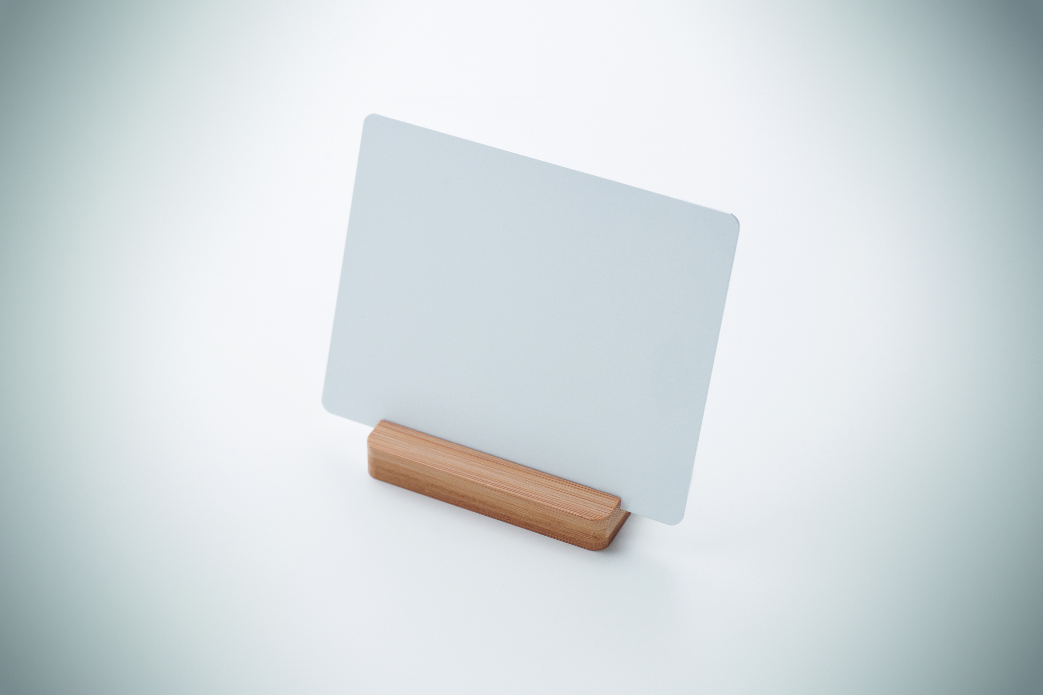 Sublimation aluminium promotion plate with natural bamboo base. Ideal for custom branding or display use.