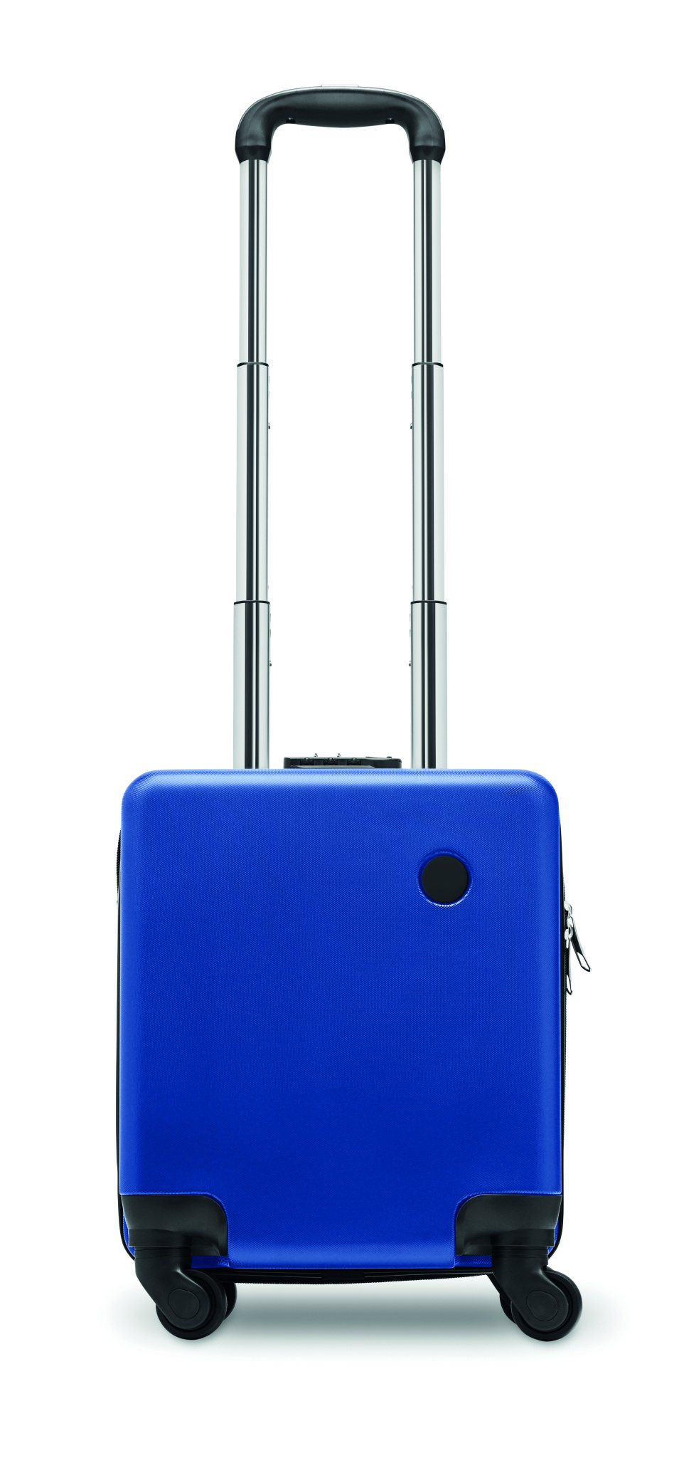 14 inch underseat luggage trolley with 4 wheels in ABS. It has an inside zippered pocket. Including a combination lock and double tube frame.