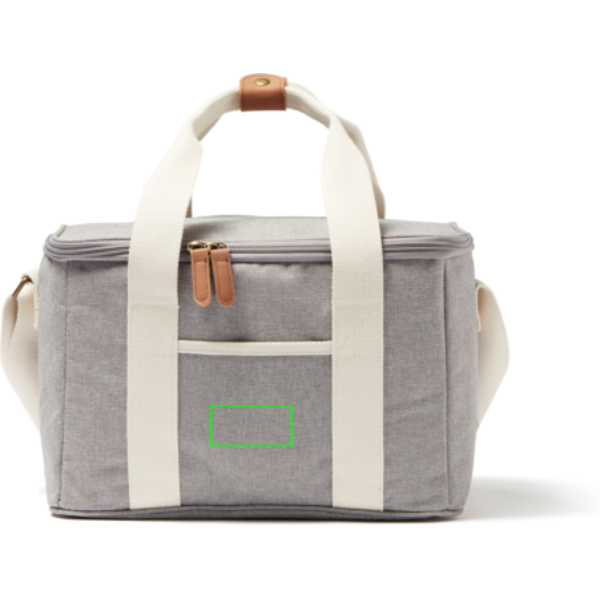 The ultimate cooler basket, mottled tone by tone with details in imitation leather and cotton. There is also a small compartment on the outside of the cooler bag, providing space for other items as well. The thick PEVA padding ensures that the cold is retained for a long time. It is also easy to clean and dry after use. Thanks to the adjustable shoulder strap and the double handle, you have several ways to carry the cooler basket.