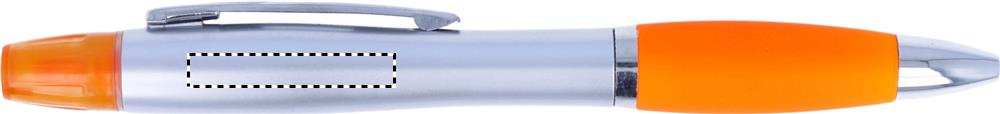 2-ühes plastmassist pastapliiats ja marker hõbedase satiinviimistlusega, kroomitud detailidega. Sinine tint.