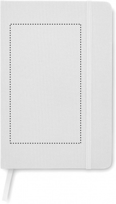 A5 märkmik kõva 600D RPET kaanega. Casebound. 160 joonega taaskasutatud paberilehte (80 lehte). Kokkusobiv elastne sulgemisrihm ja paelaga järjehoidja.