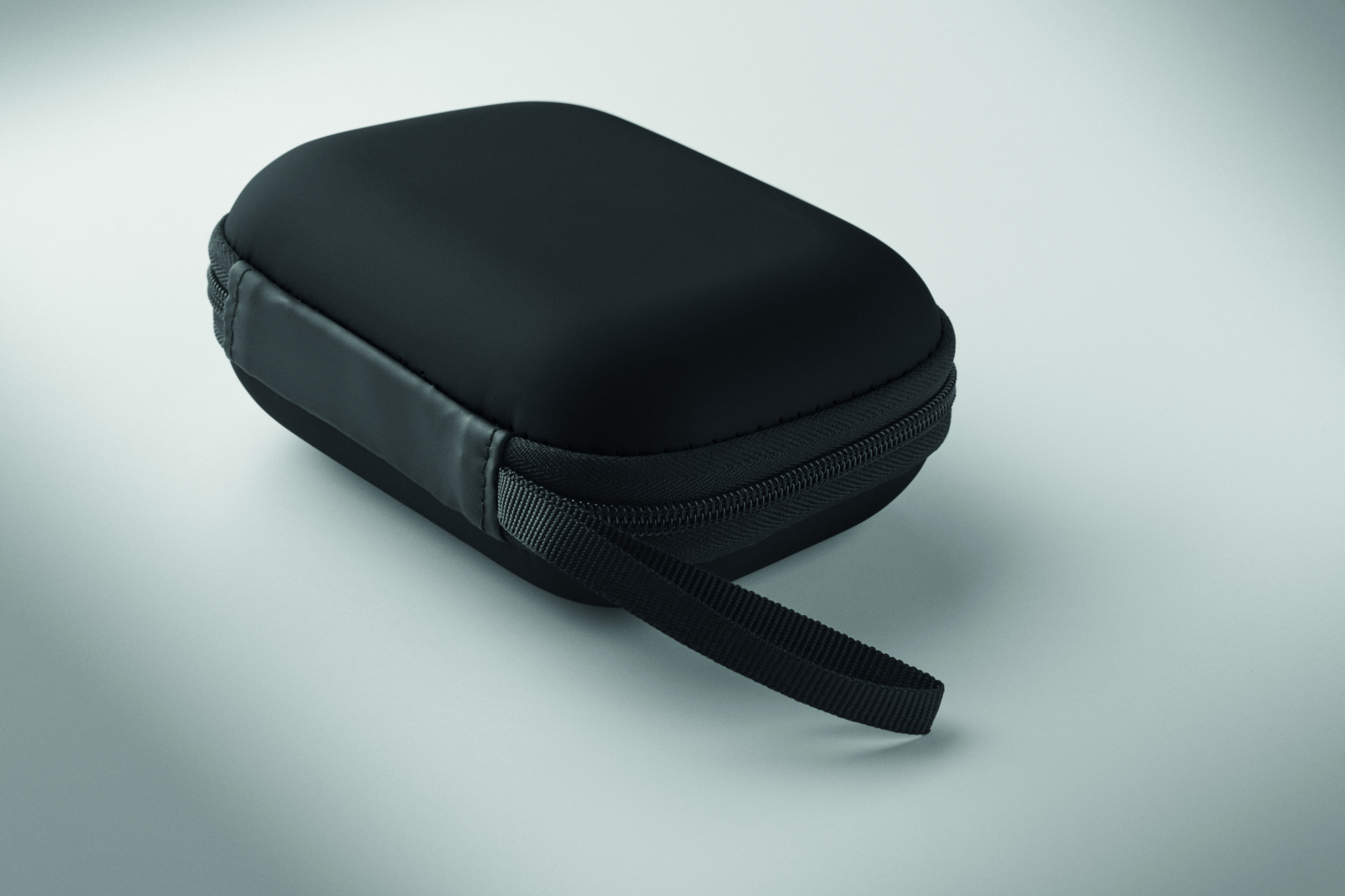 Esmaabikomplekt kõvas PU-ümbrises. Sisaldab 2 kinnast, 1 tekki, 1 teipi, 2 sidet, 1 kääre, 4 vatitupsu, 10 plaastrit ja 6 puhastuslappi. Ei ole müügil väljaspool EL-i.