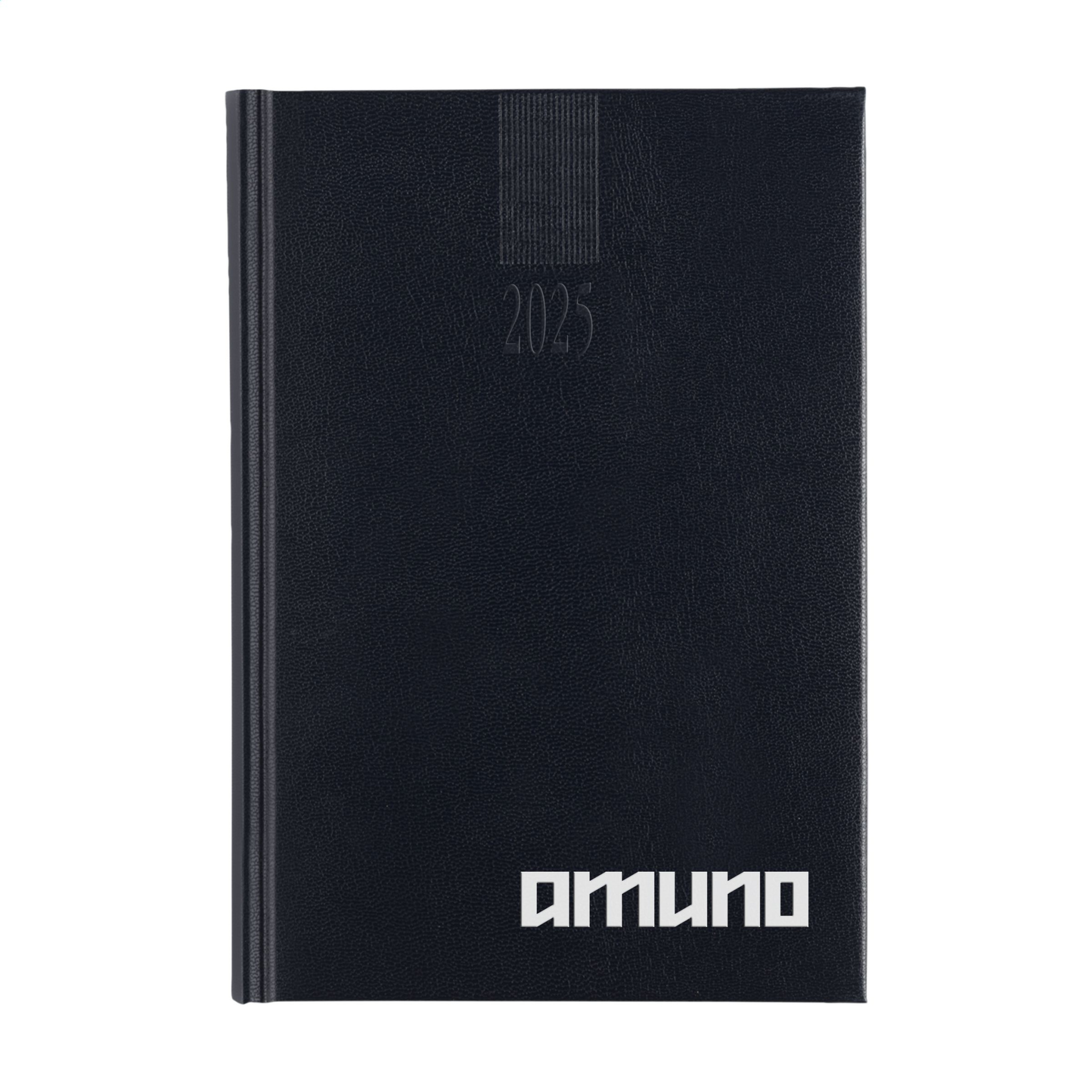 Neljakeelne kontoripäevik: EN, NL, F ja D. Vastupidava polsterdatud Balacron kaanega ja aastaarvuga esiküljel. 80 g valget, FSC Mix sertifitseeritud paber, suur nädalaülevaade kahel leheküljel, 2 värvitrüki, niitidega köidetud, nädalaülevaade kahel lehel, aastaplaneerija käesolev ja järgmine aasta, ekstra kasulik teave. Ligikaudu A5 suurus.