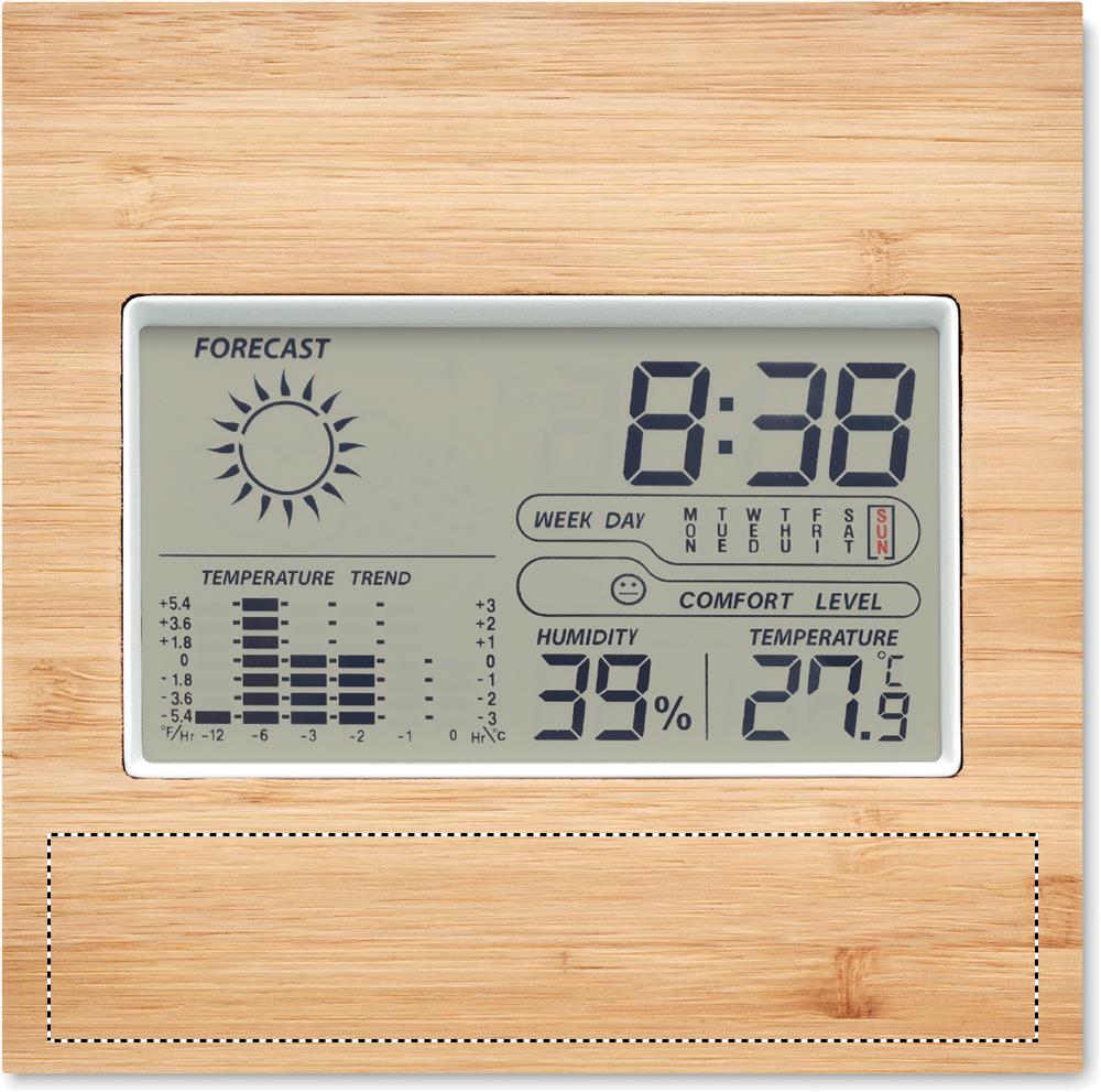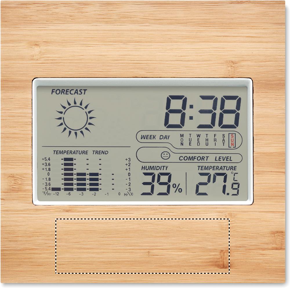 Ilmajaam bambusest esiküljega. Sisaldab kella, temperatuuri, niiskuse näitu ja kalendrit. 2 AAA patareid ei kuulu komplekti. Bambus on looduslik toode, ühe eseme värvis ja suuruses võib esineda väikesi erinevusi, mis võivad mõjutada lõppviimistlust.