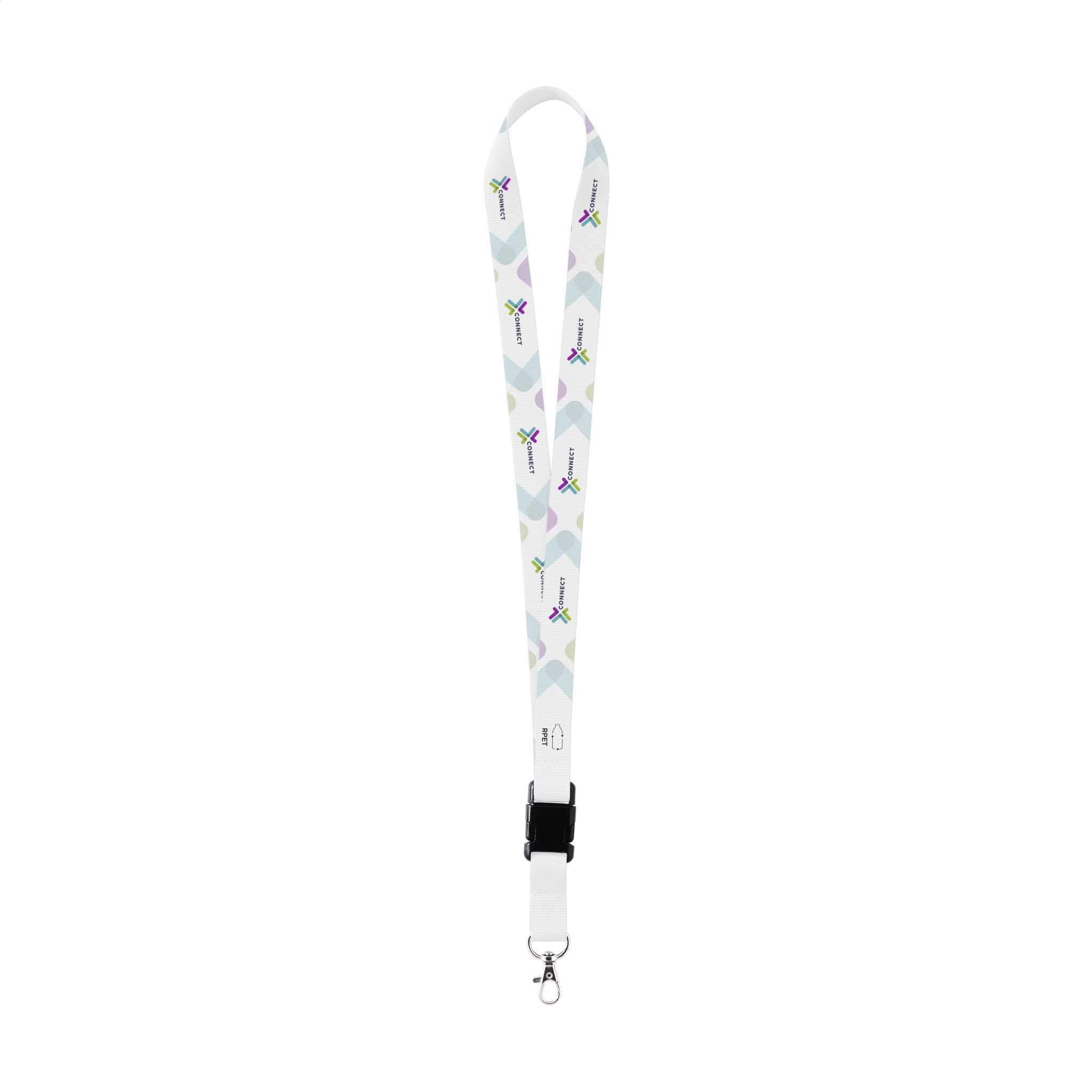 Tugev kootud RPET polüesterpael. Kaasas metallist karabiiniga. Selle toote alumise osa saab plastpandla kaudu lahti ühendada. Kaasa arvatud täisvärviline sublimatsioontrükk. Valmistatud Euroopas.