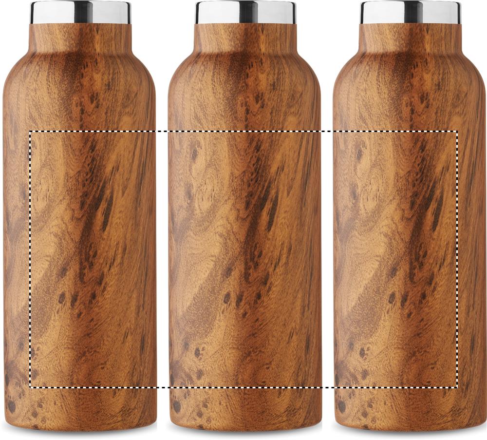 Kahekordse seinaga isoleeriv vaakumpudel taaskasutatud roostevabast terasest (90% taaskasutatud roostevabast terasest ja 10% roostevabast terasest), puidust välimuse ja kandesanga kaanega. Lekkevaba. Mahutavus: 500 ml.
