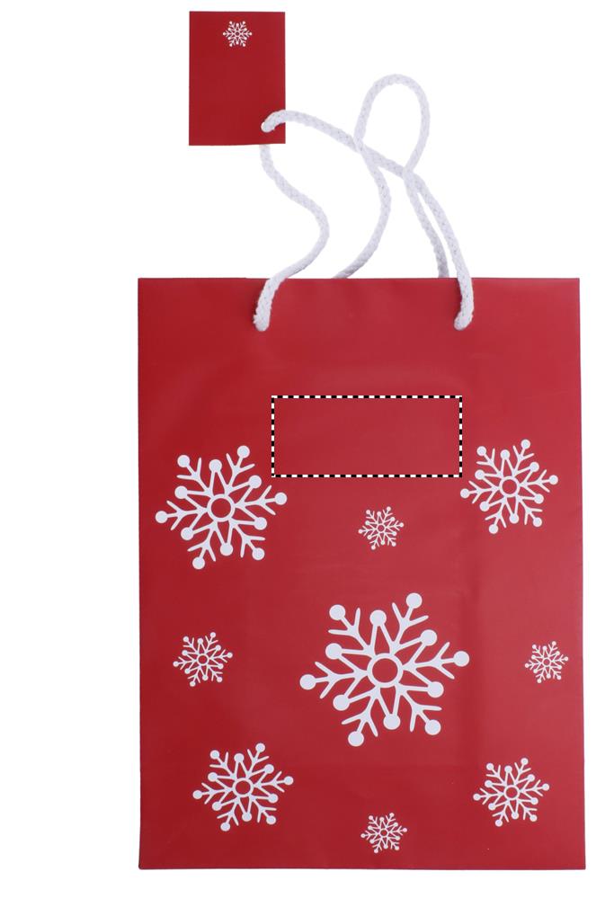 Elegantne lumehelveste mustriga kinkepaberkott. Kaasas kingitussilt. Keskmise suurusega.