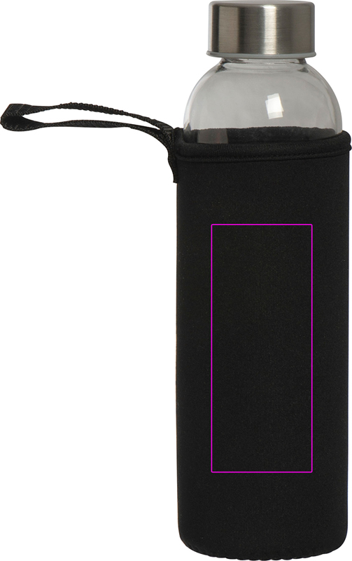 Roostevabast terasest kaanega klaasist lekkekindel joogipudel mahutavusega 500 ml. Pudel tarnitakse sobivas neopreenümbrises koos kanderihmaga. Trükime teie logo varruka keskele. Soovi korral on võimalik graveerida kaanele või pudelile ja trükkida pudelile.
