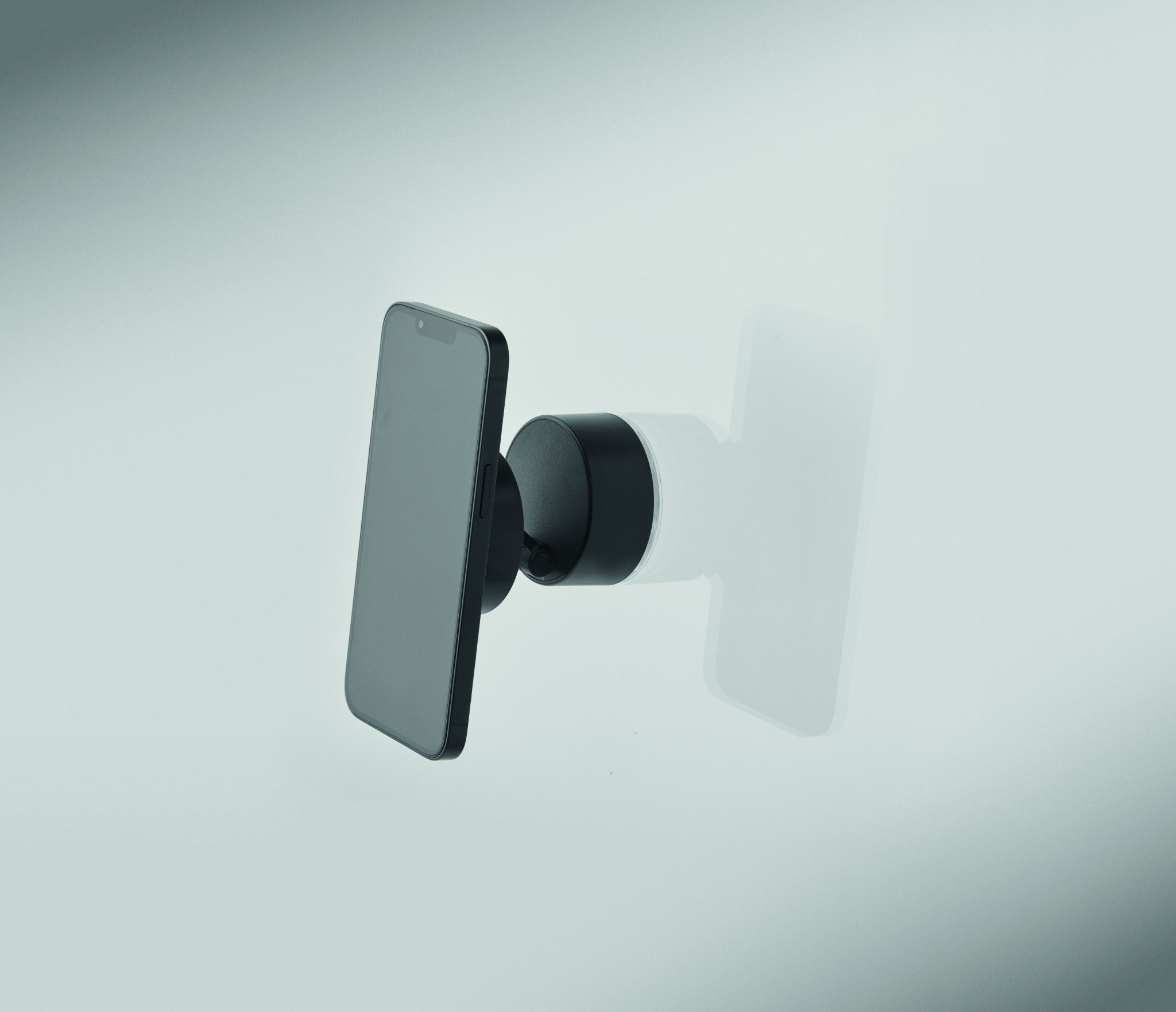 ABS-ist magnetiline telefonihoidik. Vaakumkinnitusega. Ühildub iPhone® 12 ja uuemate mudelitega. Komplektis täiendav magnetiline metallrõngas.