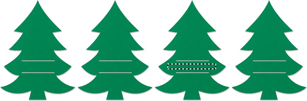 4-st jõulupuukujulises RPET-vildist söögiriistahoidjast koosnev komplekt, pakitud jõukarbis.