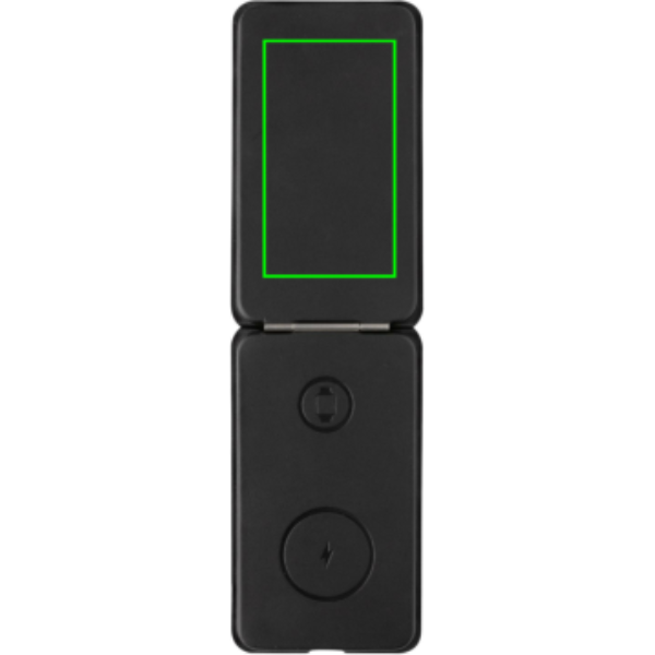 Luksuslik ja kokkupandav kolm-ühes juhtmevaba laadija, mis on valmistatud RCS-sertifikaadiga taaskasutatud PU-st. Taaskasutatud kogusisaldus: 5% eseme kogukaalust. RCS-sertifikaat tagab taaskasutatud materjalide täielikult sertifitseeritud tarneahela. Juhtmeta laadija on varustatud magnetilise 15 W juhtmevaba laadijaga ees. Tagaküljel on täiendav 5 W juhtmevaba laadija, mis sobib kõrvaklappide või muude väikeste juhtmevabade laetavate seadmete jaoks, ja 2,5 W juhtmevaba laadija nutikellade jaoks (ainult Apple'i kellad) Kaasa arvatud RCS-sertifikaadiga 120 cm taaskasutatud TPE-kaabel. Pakitud FSC® mix kraft pakendisse. Toode ja tarvikud 100% PVC-vaba. Sisend: 9V/3A optimaalseks kasutamiseks. Väljund: Ees: 9V/1.1A; 9V/1,67 A/(15W), kõrvaklapid: 5V/1A (5W), käekell: 5V/0,5A.