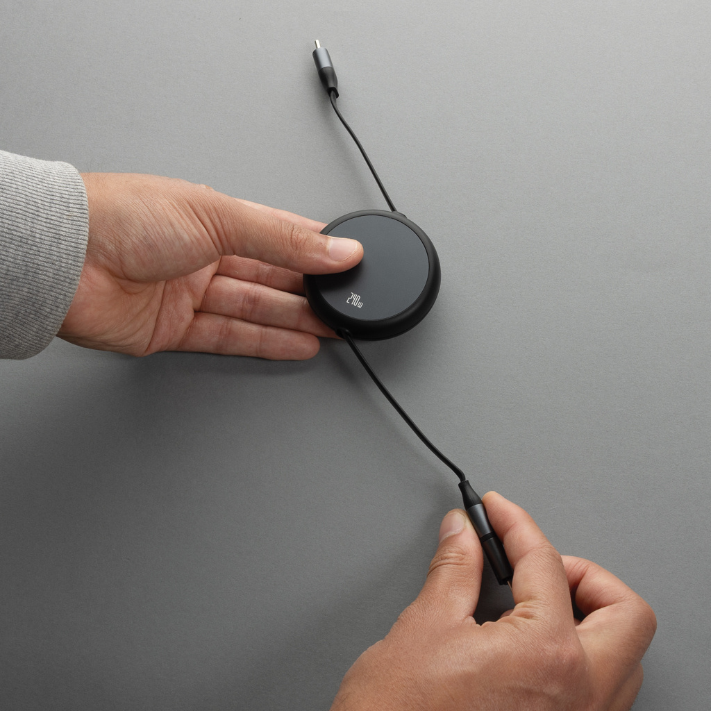 Logotrade firmakingituse foto: Terra RCS alumiiniumist sissetõmmatav 240W 2-in-1 kaabel