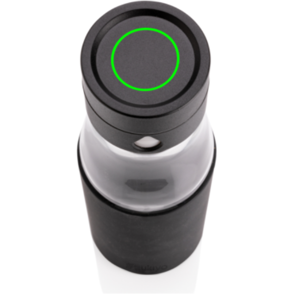Logotrade meene foto: Ukiyo klaasist hüdratatsiooni jälgiv varrukaga pudel