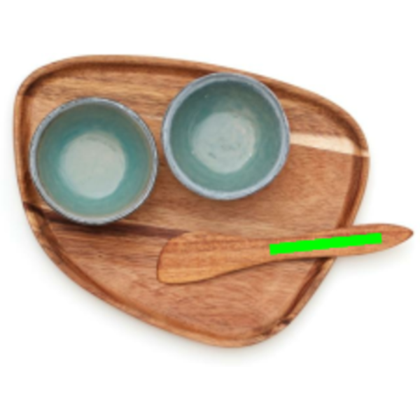 Kaunis serveerimiskomplekt, mis sisaldab kahte kaussi ja puidust taldrikut. Suurepärane väikeste roogade nagu tapased, oliivid või jaaniseened serveerimiseks. Nomimono ammutab inspiratsiooni loodusest ja meid ümbritsevast maast, luues selle maalähedase vahemiku looduslikes maatoonides, kus pole kahte ühesugust eset. Jaapan kohtub skandinaavia omaga, maalähedane modernsega. Kogumisobjektid maalähedaseks ja inspireerivaks serveerimiseks. Iga ese on käsitsi valmistatud ja ainulaadne. Õige viimistluse saamiseks glasuuritakse iga ese kolm korda. Nõudepesumasinas ja mikrolaineahjus pestav.
